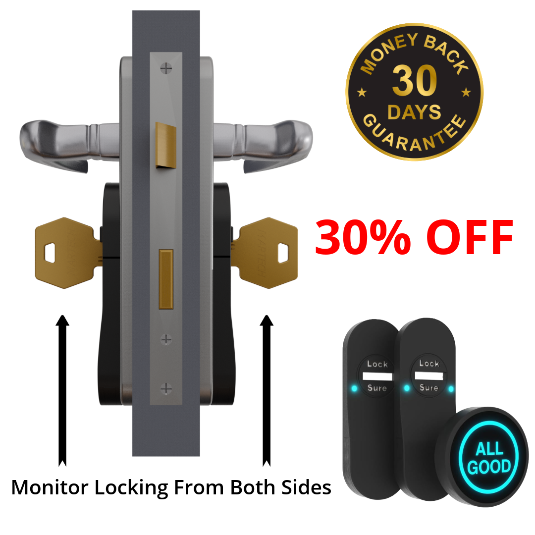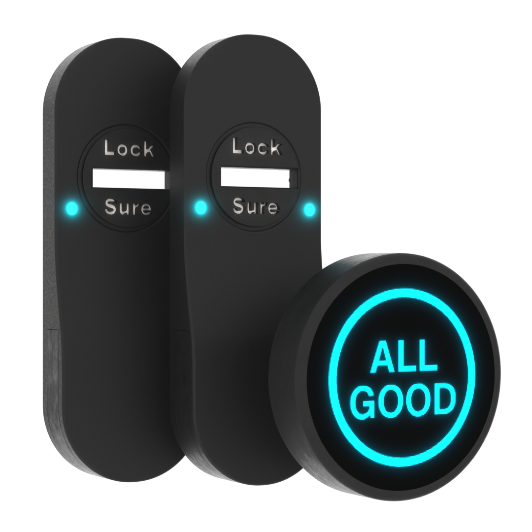 - Includes Locksure Display Hub showing the status of upto 4 doors and connection to the Locksure Mobile App (optional).