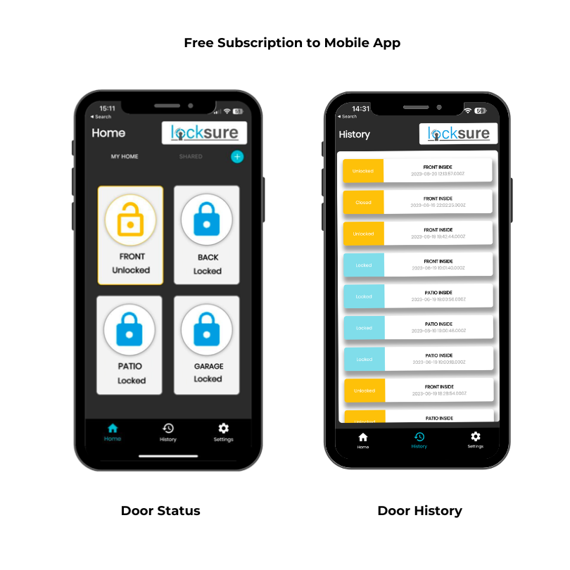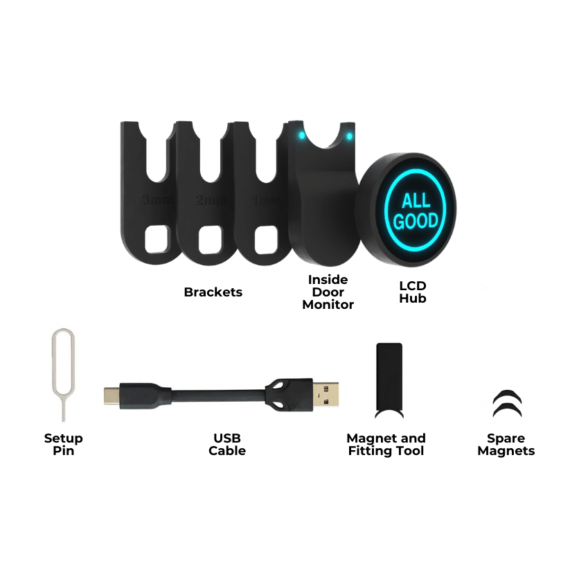 - Includes Locksure Display Hub showing the status of upto 4 doors and connection to the Locksure Mobile App (optional).